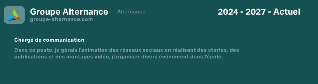 l’entreprise “Groupe Alternance” où je suis chargé de