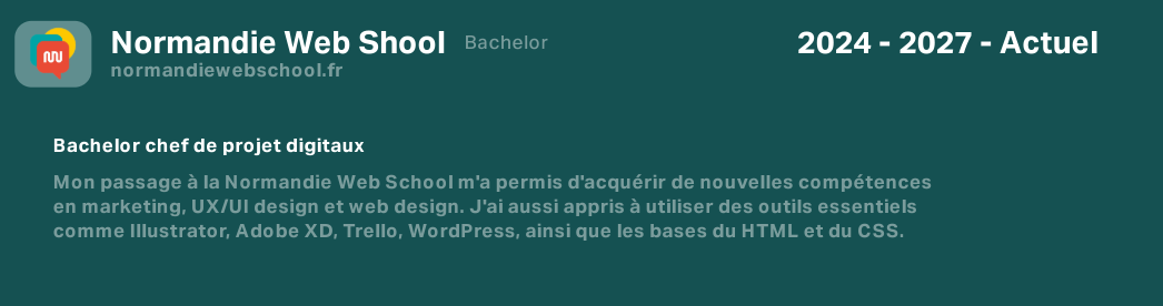À l'heure actuelle, je suis étudiant en alternance à la NWS dans